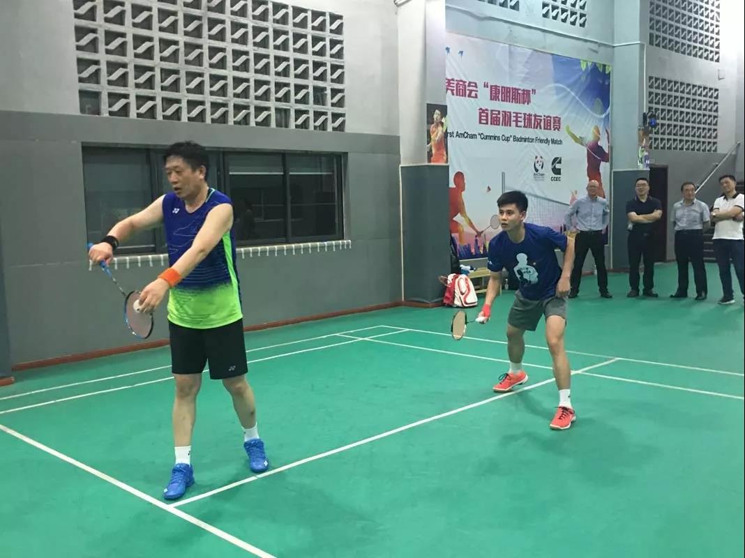 会议后,重庆康明斯总经理赵留军、广州威能总经理邵剑梁等领导一行前往员工活动中心,进行羽毛球联谊活动。