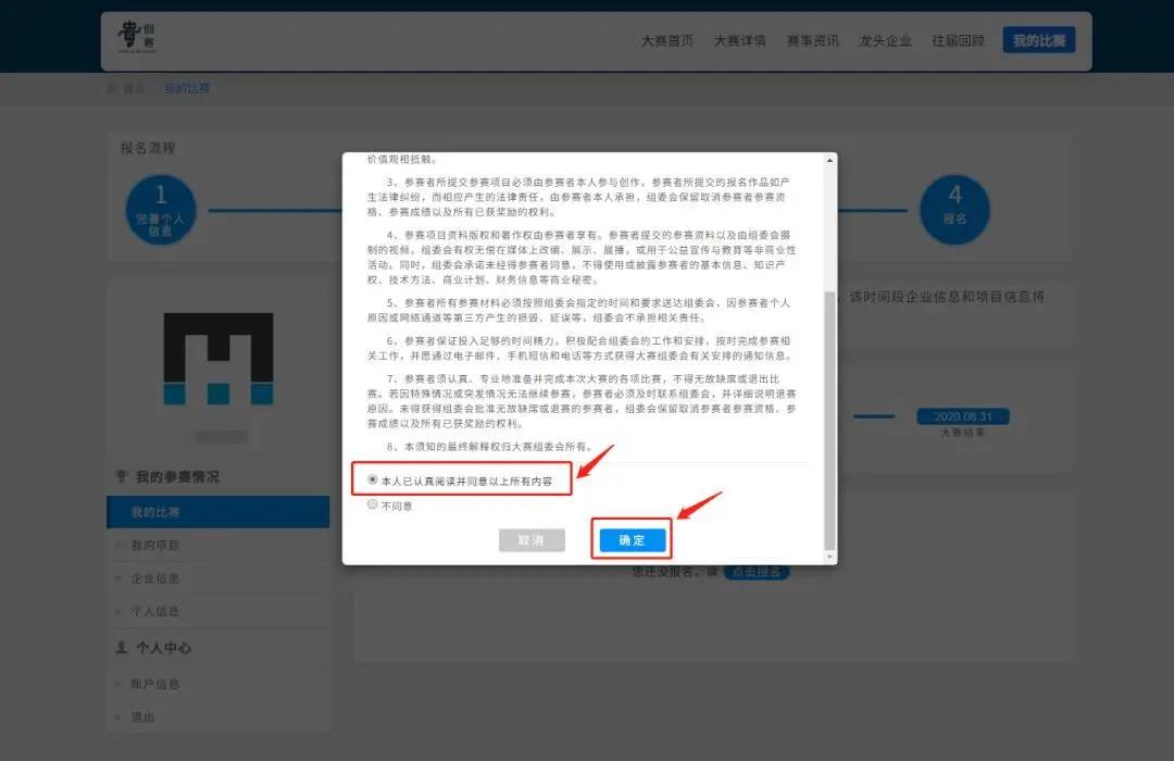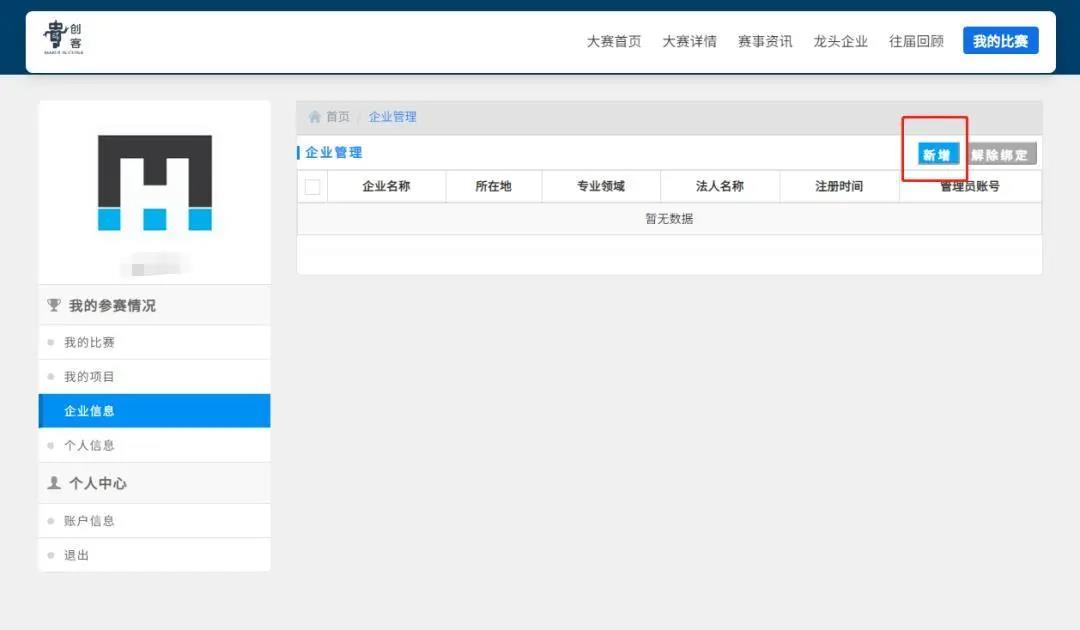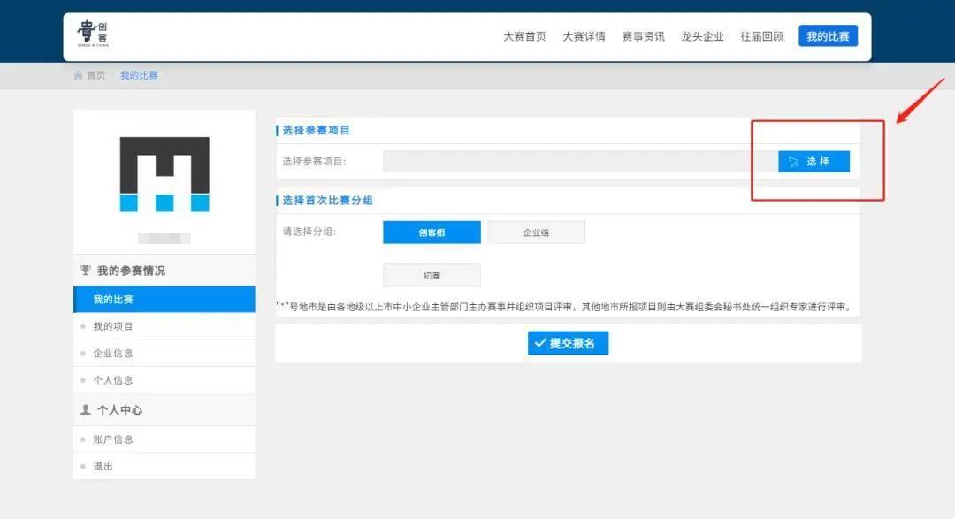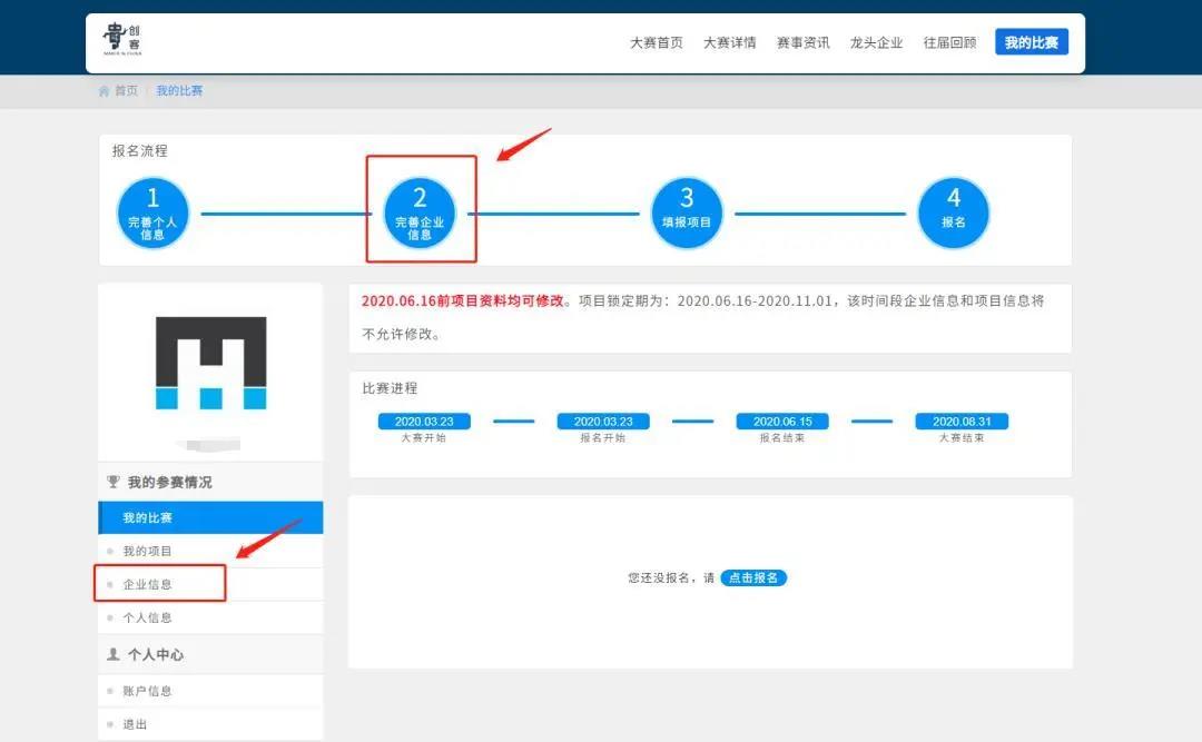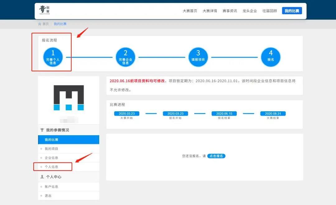 注册完账号,即可登录进入报名界面,创客组需要填写完善“个人信息”,企业组需要填写完善“企业信息”。