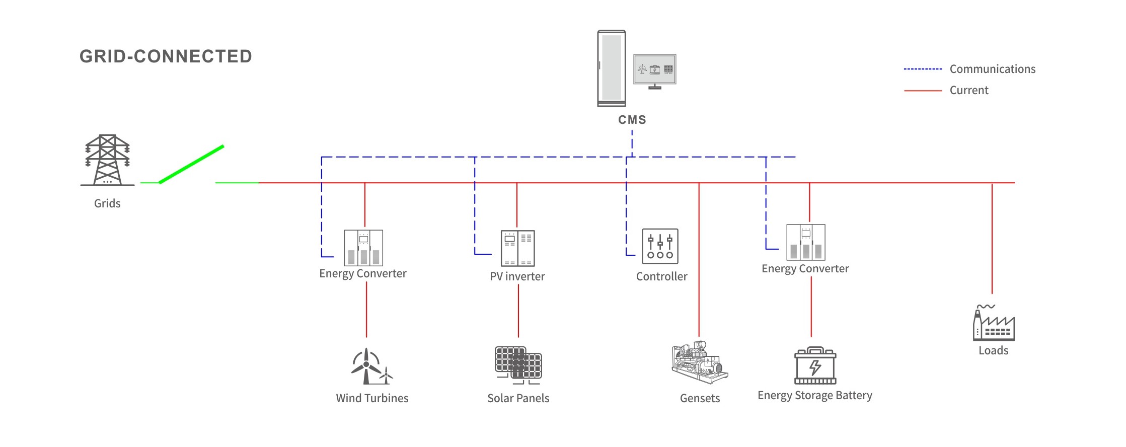 A grid-connected micro-grid is a mode that interconnects with the external grid and exchanges electricity. When the external grid fails, the micro-grid can quickly switch to the off-grid mode to ensure the stability of power supply.