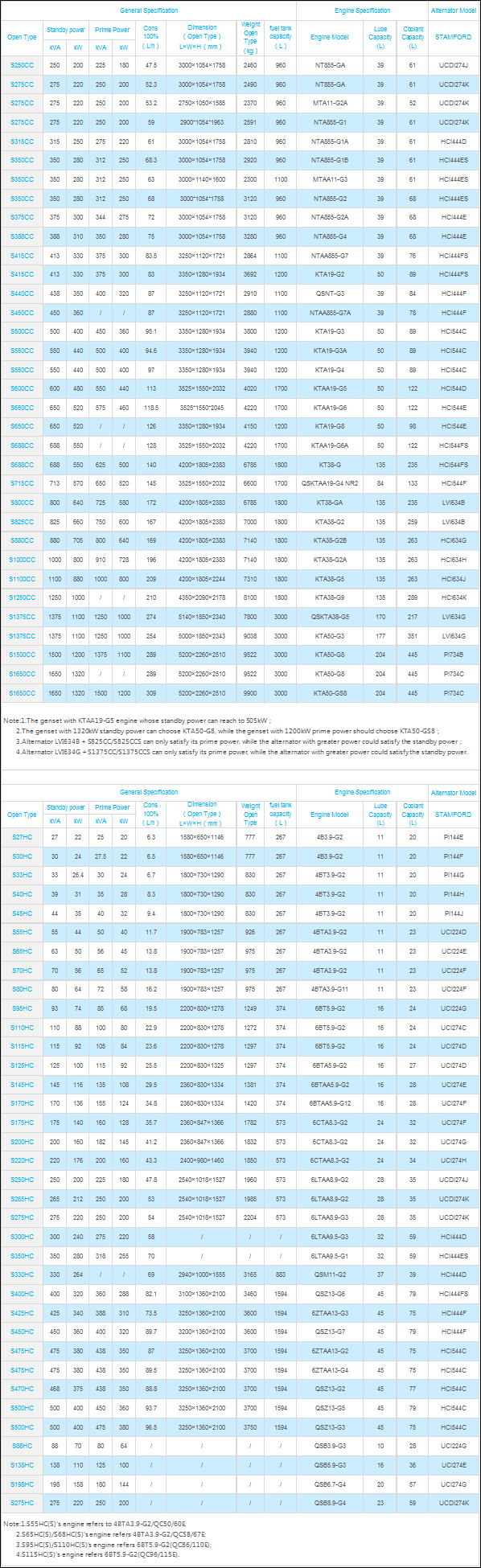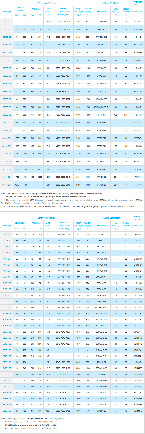 10kVA-2750kVA(50Hz、60Hz)