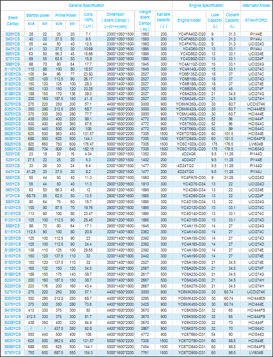 20kVA-800kVA(50Hz、60Hz)