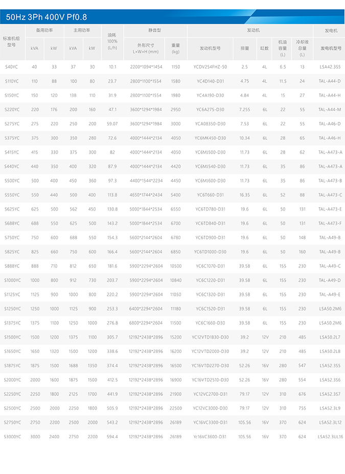 ● 400kW以下机组底座设有叉车孔,方便运输;
